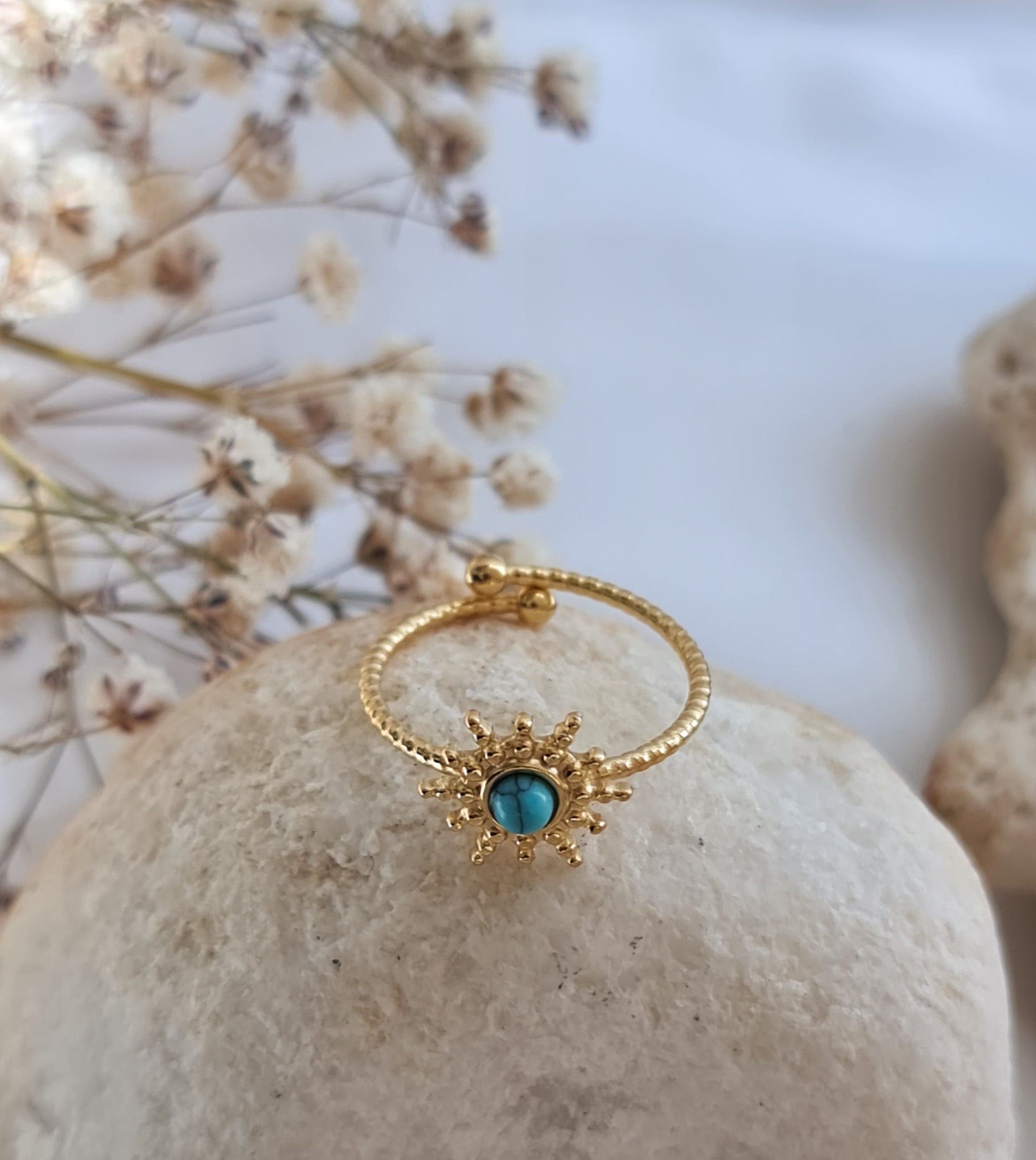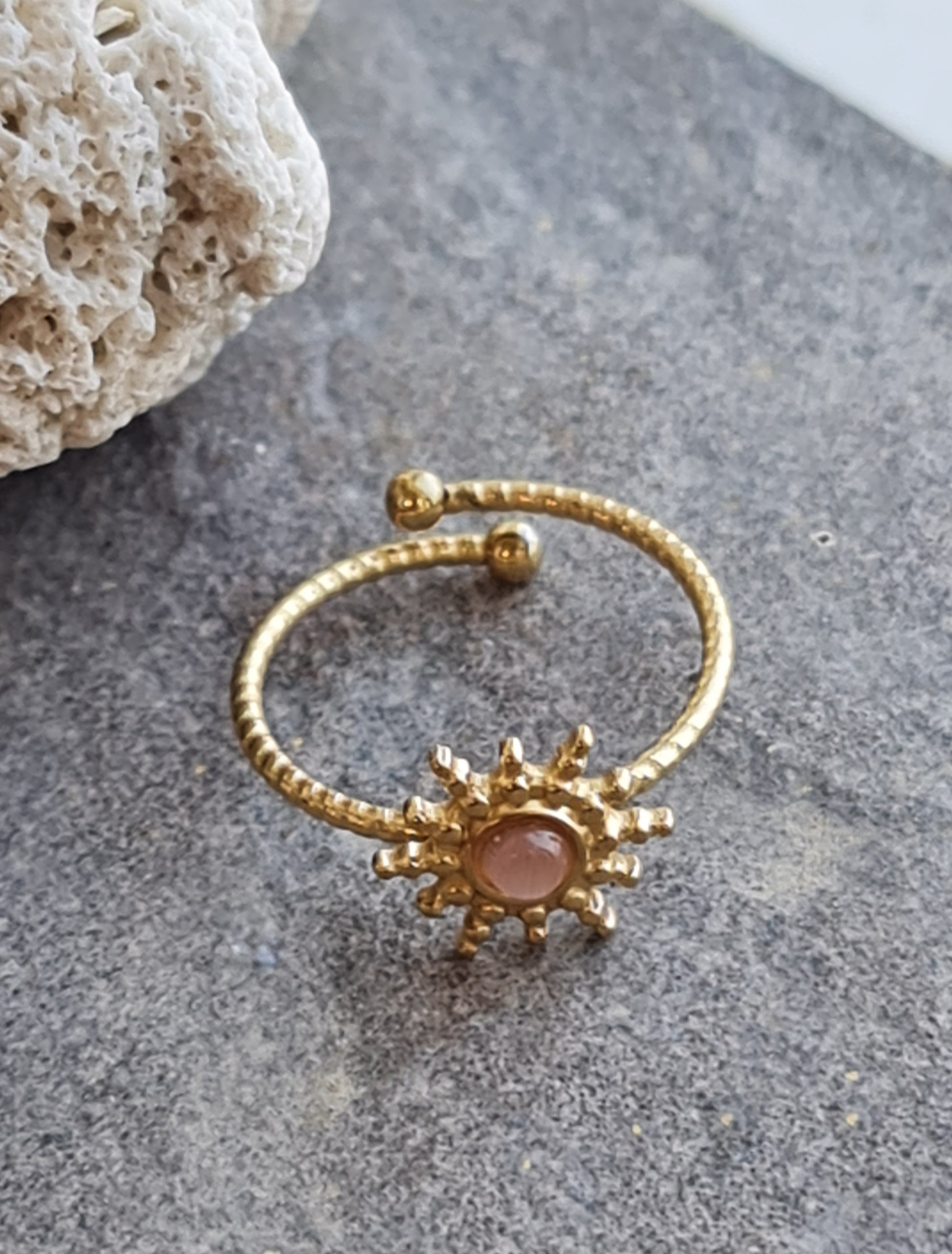 A pink studded ring adorned with sparkling gemstones, exuding a vibrant and feminine allure. Its timeless design effortlessly elevates any ensemble, making it a standout accessory for both everyday wear and special occasions.